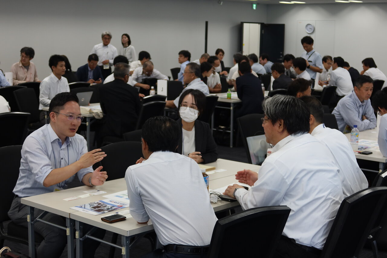 テクノア主催セミナーとして「中小製造業でこそ活用すべき『生成 AI』」の講演後、TECHS ユーザー特別セミナーで吉野機械製作所(千葉市緑区)とセライズ(東京都大田区)の 2 社の DX 事例が紹介された。また、意見交換会では参加者がグループに分かれテックスの活用法などについて情報交換を行った。
