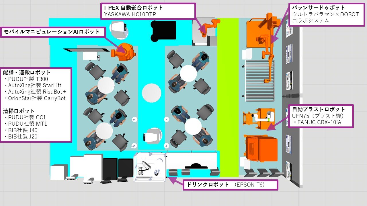 HCI の『~人とロボットの共存社会の構築~』と題して【産業用ロボットシステム】【配膳・運搬用ロボット】【人型ロボット】の4つのカテゴリーを出展します。