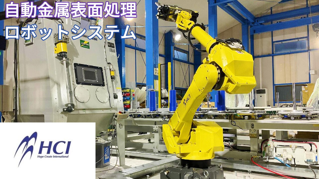 ブラスト機・金型表面処理装置とのコラボロボットシステムでブラスト・表面処理を自動化している。納入先は、製造業、サービス業など垣根の無い業界に納入している。